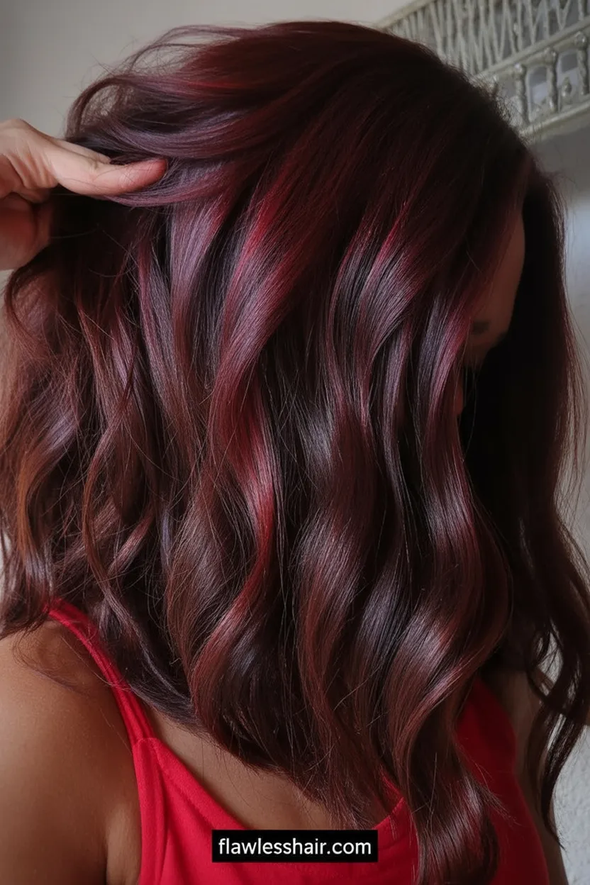 Who it’s for: anyone with medium to thick hair who wants dimension without living at the salon, and it’s especially pretty for brunettes easing into red. The darker base helps grow-out look natural, while the brighter pieces add movement to waves and curls. Ask for highlights that are placed in soft ribbons (not chunky), then style with loose bends to show the contrast. A sulfate-free shampoo keeps the Raspberry tone from fading too fast.