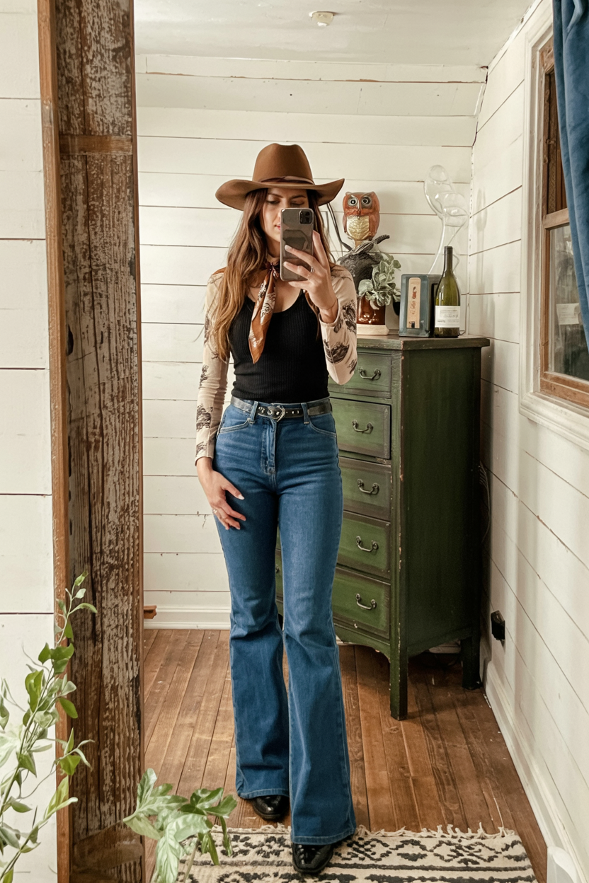 13. Classic Bandana & Flare Jeans Rodeo Style