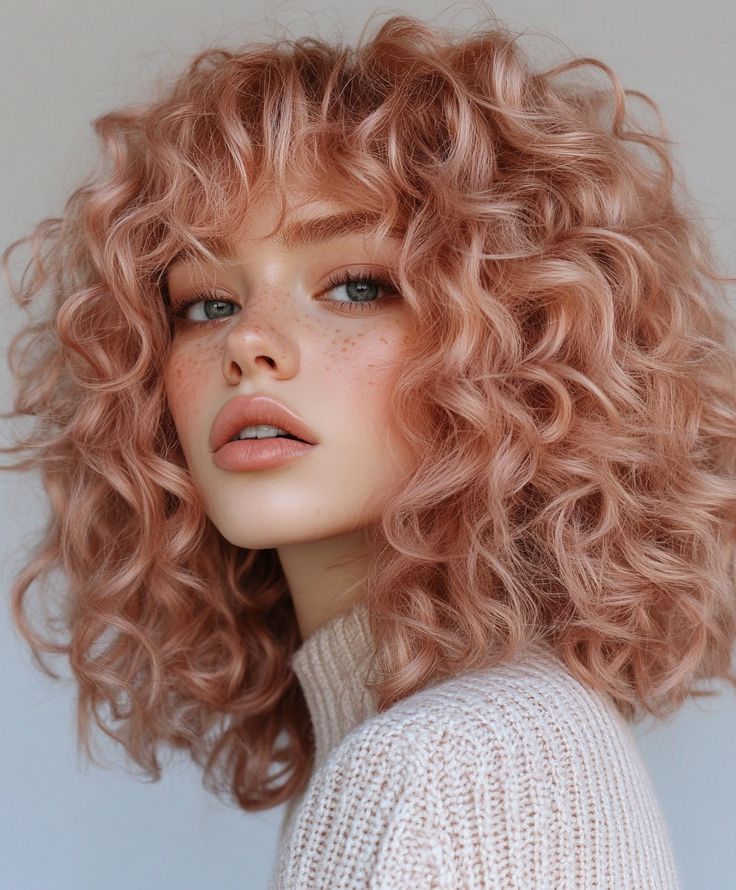 Styling Tip: To maintain the shape, trim the bangs regularly. Use a texturizing spray to add volume and keep the curls looking fresh throughout the day. This haircut works great with bold earrings or minimalist necklaces for a complete look.