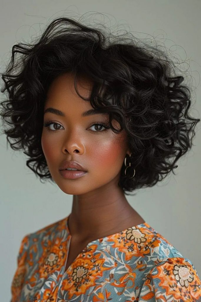 This textured bob is a sophisticated option for women who love structure in their hairstyle. The layered curls add a touch of elegance while keeping the cut versatile for both formal and casual occasions. It’s especially flattering on medium hair textures.