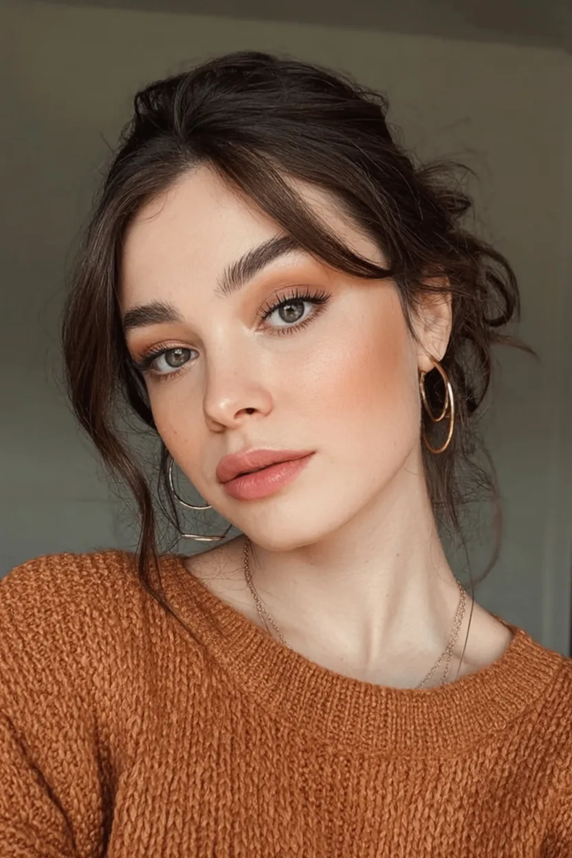 This look is wonderful for women who want makeup that fits real life—busy mornings, casual lunches, work calls, school events, all of it. A sheer Foundation or skin tint, cream blush, a wash of neutral shadow, and tinted balm are enough to make it sing. It suits Brown eyes especially well because the soft earthy tones bring warmth forward without overpowering the face. And if you’re a beginner kind of makeup girl, this is a great one to try because it’s forgiving, Easy, and doesn’t require perfect symmetry. Think of it as the beauty version of your favorite soft knit: always reliable, always flattering.