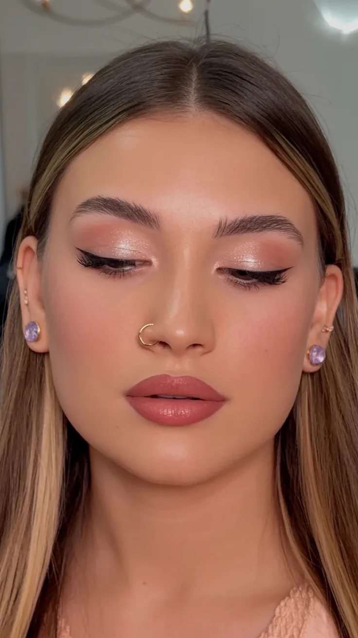 This is such a Cute option for anyone who loves makeup with a feminine mood. It works beautifully for fair to light-medium skin, especially when you want something for graduation, for prom, or even a Natural wedding guest tutorial vibe with a sweeter twist. A pearly lid shade, soft Pink blush, brushed brows, and a juicy gloss will get you there step by step. Compared with stronger glam, this version feels lighter and fresher, which makes it easier to wear in daylight. It’s one of those looks that pairs perfectly with ribbons, soft curls, and that “I just want to feel pretty” mood.
