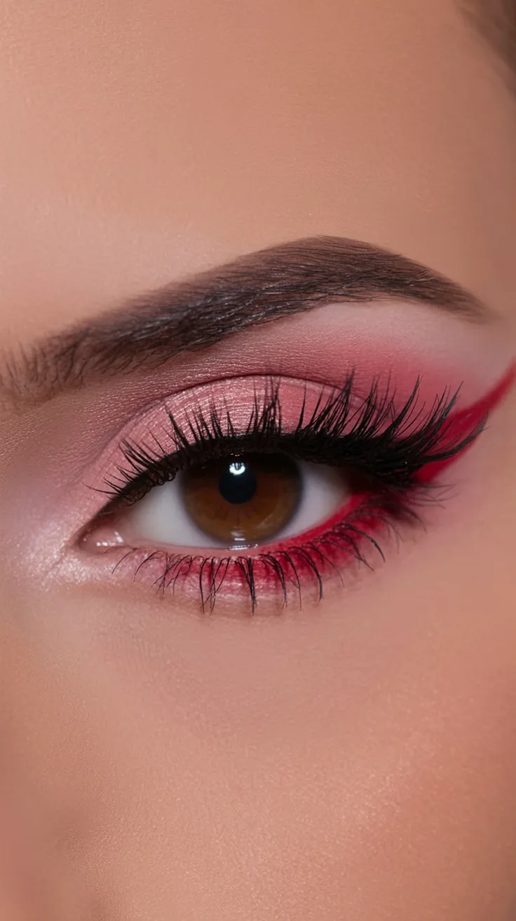 Wear this when you want your makeup to feel expressive without going full dramatic glam. It’s especially pretty for creative events, for graduation parties, Eid celebrations, or even a Wedding guest summer look when you want something fresh and memorable. Brown eyes look stunning with rosy tones like this, and the easiest way to recreate it is to build your usual liner first, then tap in the Pink detail with shadow or a colored liner on the outer corner and lower lash line. Compared with a full bright lid, this version is much more wearable. It gives personality, charm, and just enough edge to feel exciting.