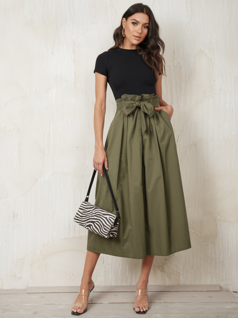 Statement Elegance: Bow-Tied Green Skirt for a Chic Look
