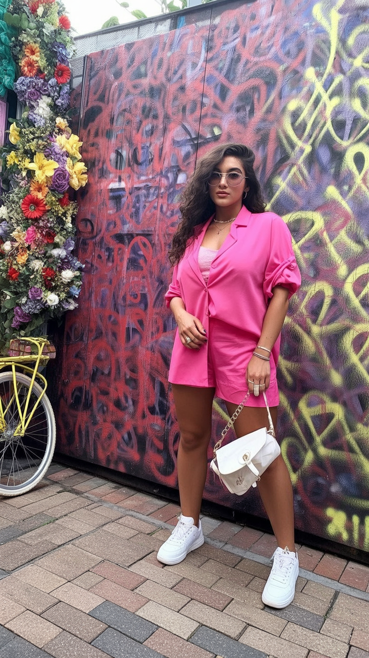 If you’ve ever wished you had an outfit that could answer to “I’m fun, I’m confident, and yes, I did show up like this on purpose,” welcome it with open arms. Hot pink has fearless energy—bold and bright, fun-loving, and mood-lifting. It makes brunch an event, like you’re celebrating something (even if it’s just making it through the week).