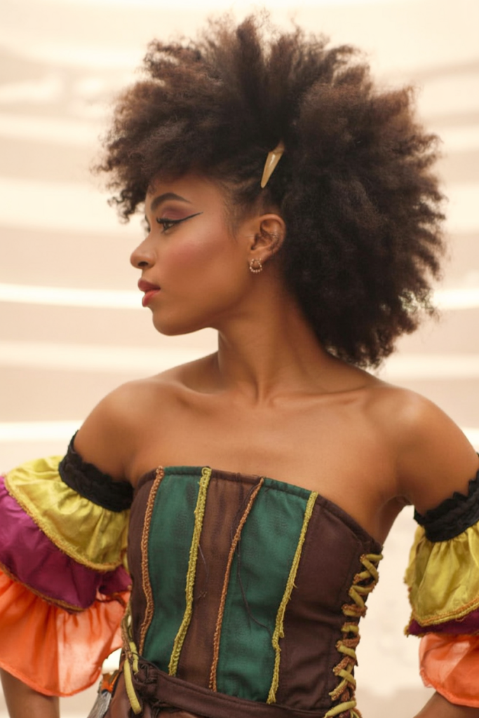 A dream match for natural hair with dense texture, this shape gives freedom and definition without sacrificing fullness. Keep it moisturized with a spritz bottle and refresh with a pick. Great for anyone who wants to stand out while staying effortlessly grounded in their beauty.