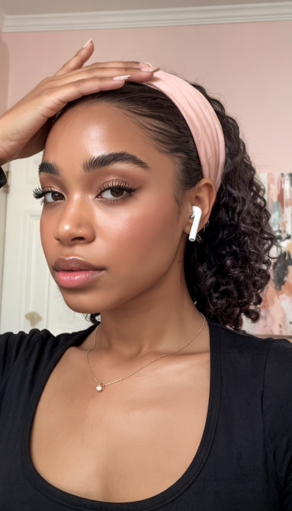 Minimalist but make it polished — this slick-back style with a headband feels like a breath of fresh air. It’s understated, classic, and perfect for both Zoom meetings and weekend errands. Plus, there’s something chic about how the curls peek out beneath the soft band.