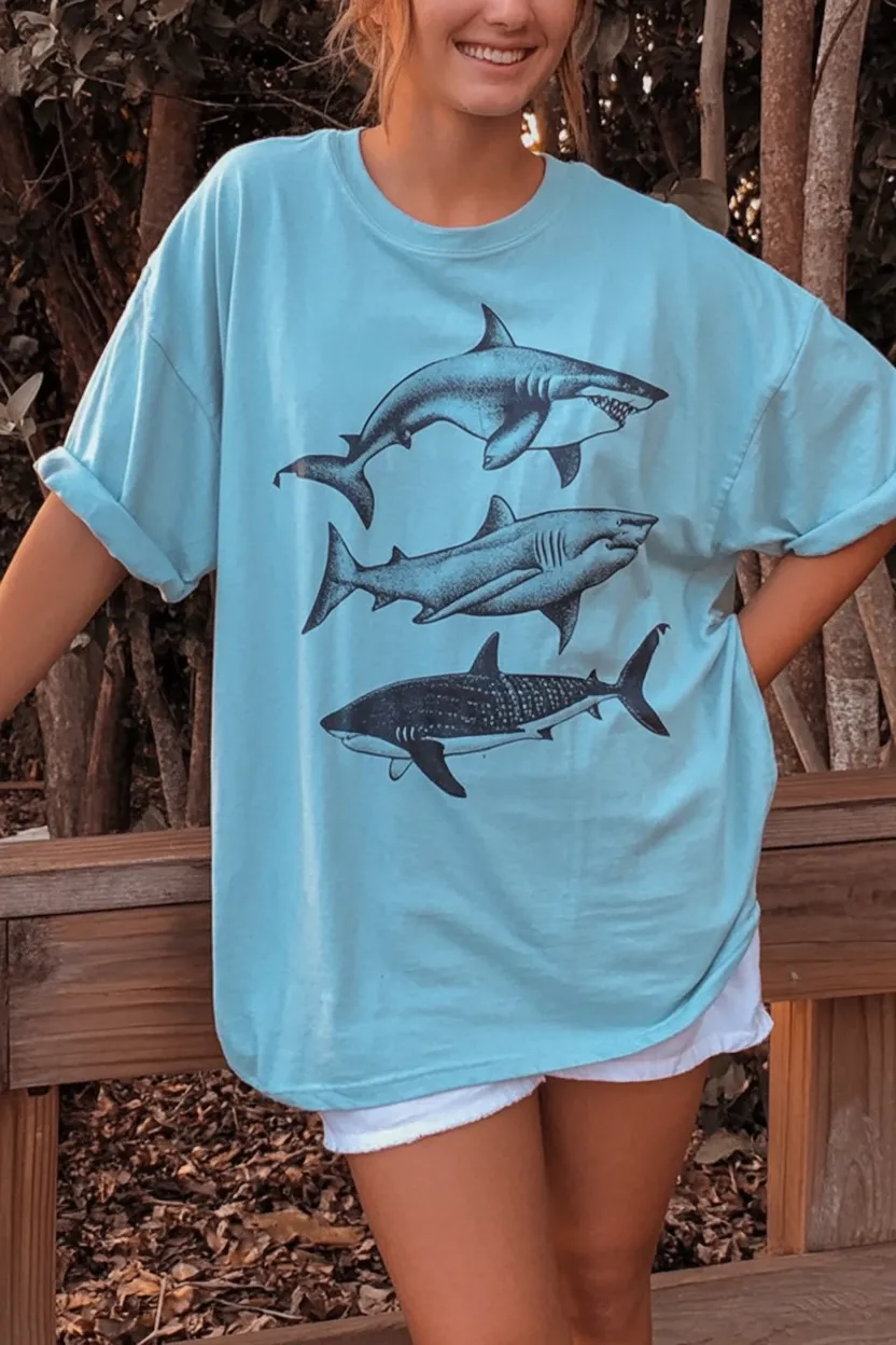 Some summer outfits are not about polish at all—they are about comfort, personality, and that easy off-duty attitude we all need sometimes. This oversized graphic tee has a fun coastal energy that feels playful and relaxed, especially paired with simple shorts for a no-pressure, no-fuss kind of look. It is the outfit version of an easy beach day, a lazy weekend, or a quick coffee run when the weather is too warm for anything complicated. And honestly, there is real style value in pieces that feel this effortless.