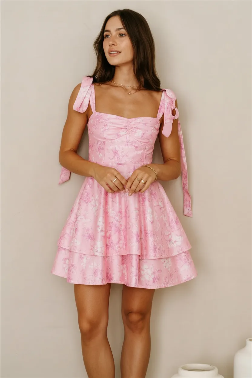5. Pink Bow-Shoulder Mini Dress