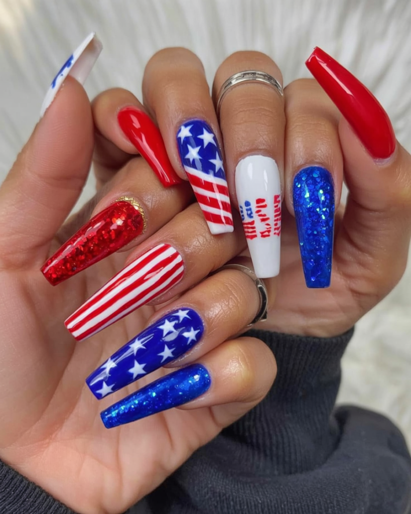 21 Unique Patriotic Nails 2025 With Red, Blue, Sparkle, Glitter, Matte Designs For 4th Of July