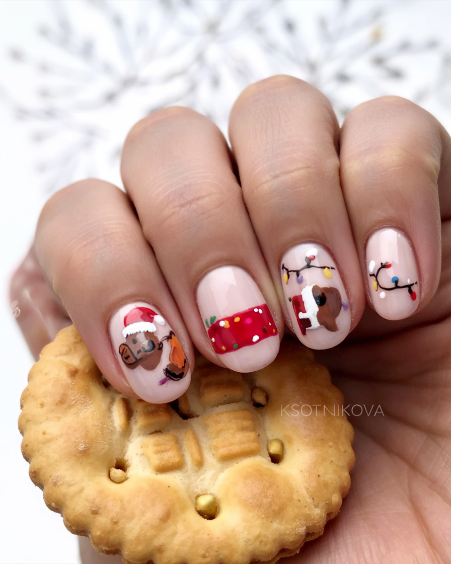 Short square nails are a must for this playful design; it is all about comfort and wearability. These nails are for the woman who likes to use humor and cuteness as their holiday statement. Put on an oversized sweater, hold a steaming cup of hot cocoa, and you are on your way to throwing glitter everywhere.
