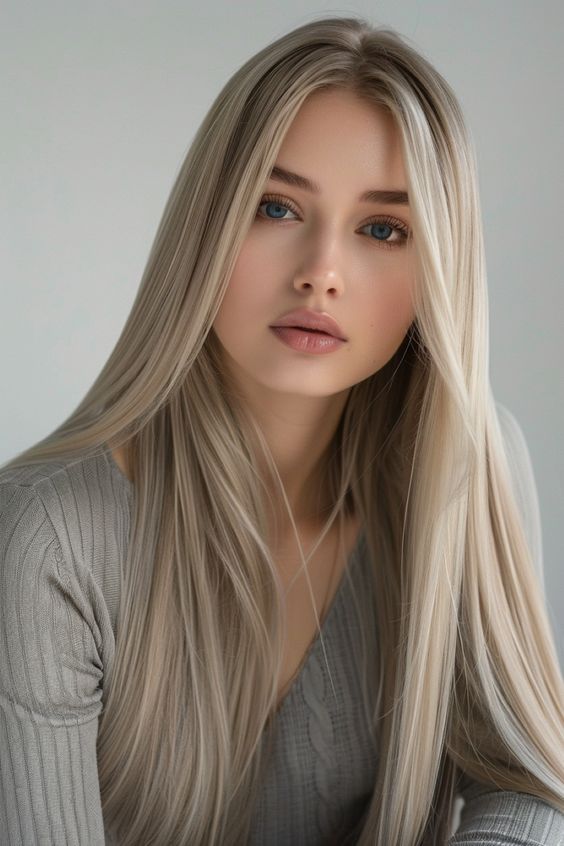If you’re looking for a sophisticated and timeless style, this sleek ash blonde is the perfect choice. The long hair allows the cool blonde tones to shine, creating a color pattern that is both elegant and understated. This style is ideal for those who prefer a minimalist look, with the sleek, straight strands offering a polished finish. Whether you’re attending a formal event or simply want a refined everyday style, this ash blonde will keep you looking chic all winter long. Pair it with a sleek coat or a tailored dress for maximum impact.