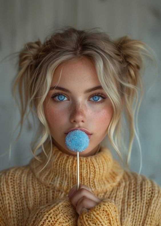 This playful take on blonde hair features two buns with loose, tousled waves that frame the face beautifully. The look is youthful and fun, perfect for those who want to add a touch of whimsy to their winter style. The color is a soft blonde that’s ideal for medium length hair, offering just the right amount of brightness without being overwhelming. This style is perfect for casual winter outings, adding a bit of personality to your look. Pair it with a cozy sweater for a playful, winter-ready ensemble.