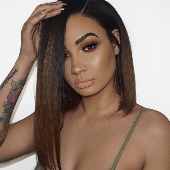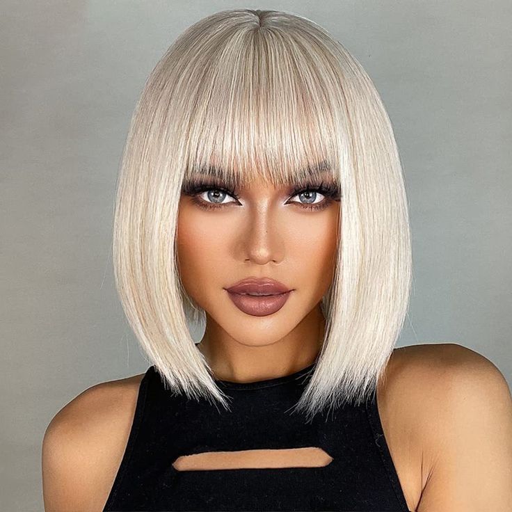 This sleek, straight long bob features bold, blunt bangs for a sharp, stylish look. The cut offers a polished appearance while adding structure, making it an ideal choice for those seeking a sophisticated yet trendy style.