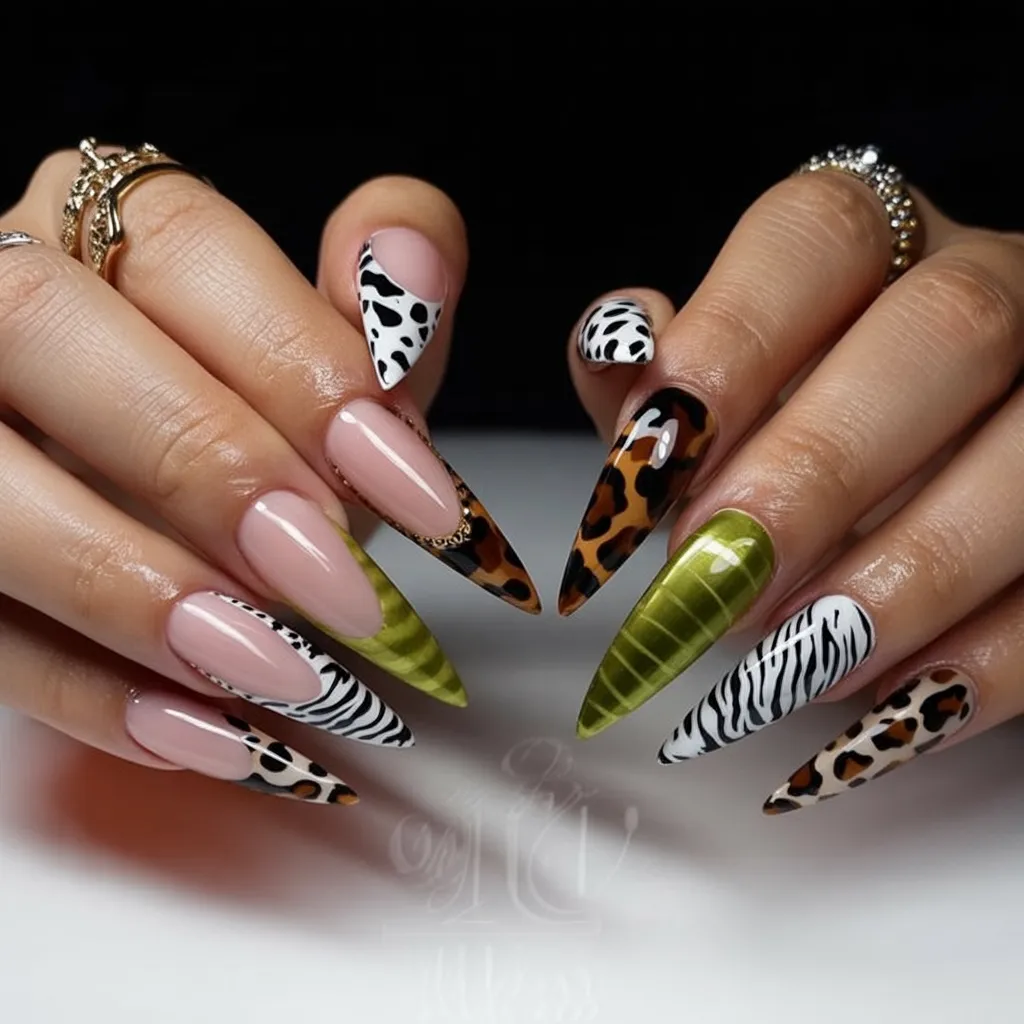 13. Luxe Mixed Animal Prints Stiletto Nails