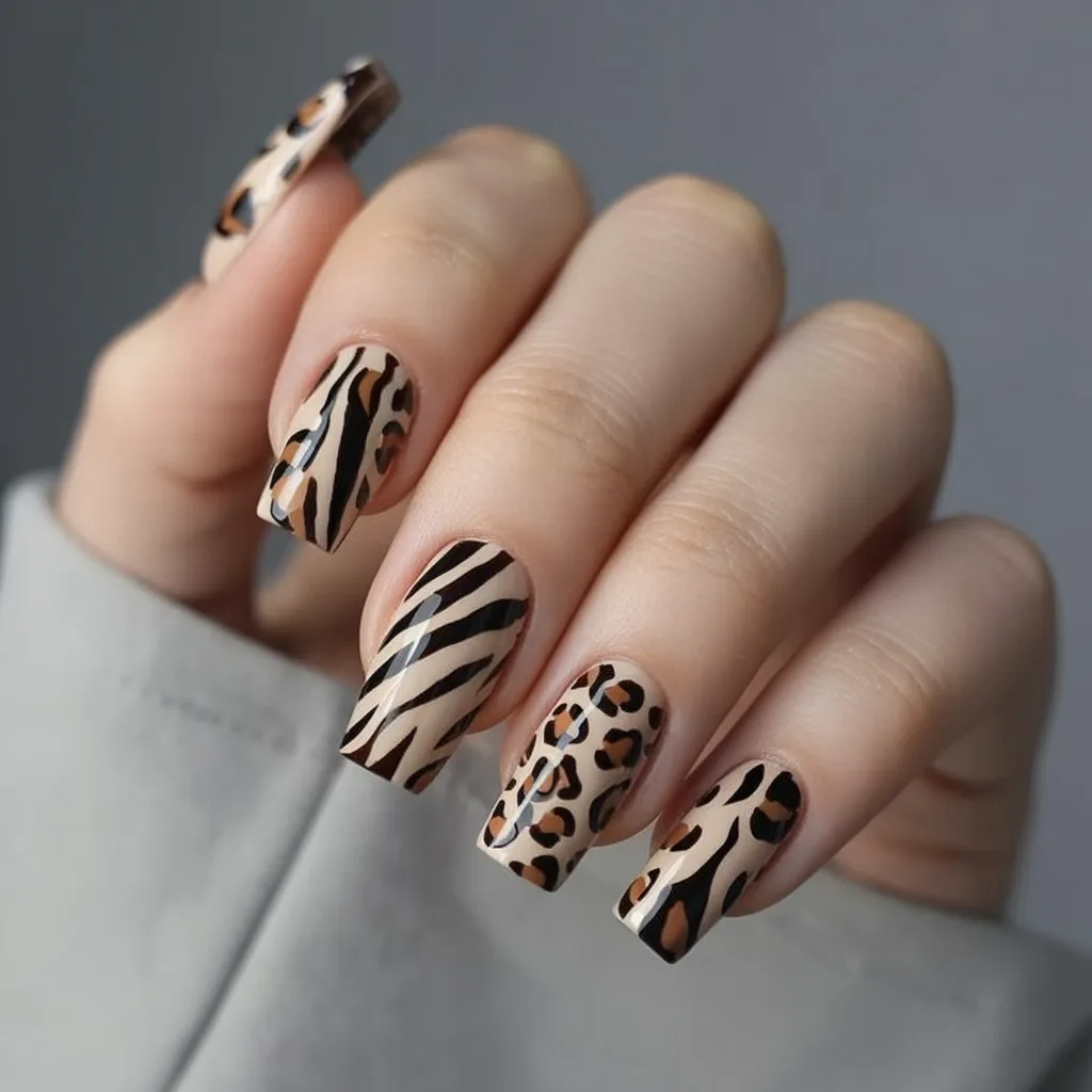 This is the kind of nail design that goes with everything and still feels like a statement. The neutral base keeps it soft and wearable, while the mix of animal prints adds personality—like a great handbag that pulls an outfit together. It’s stylish without being loud, and it has that “I’m put-together, but I’m also fun” energy. If you’re new to animal print nails, this one feels like the easiest way in.