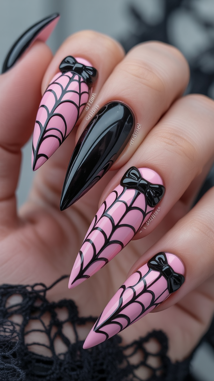 Contrary to very little harshness seen on nails, only a subtle few bold-design appreciation consists of it with the elongated scheme, so it ideally fits long nails where the web pattern stretches enticingly over the surface. Contrasting the base color of the manicure would certainly require a high-gloss top coat to keep things looking neat and polished. Style tip: Combine them with lace or velvet accessories for full-on goth inspiration.