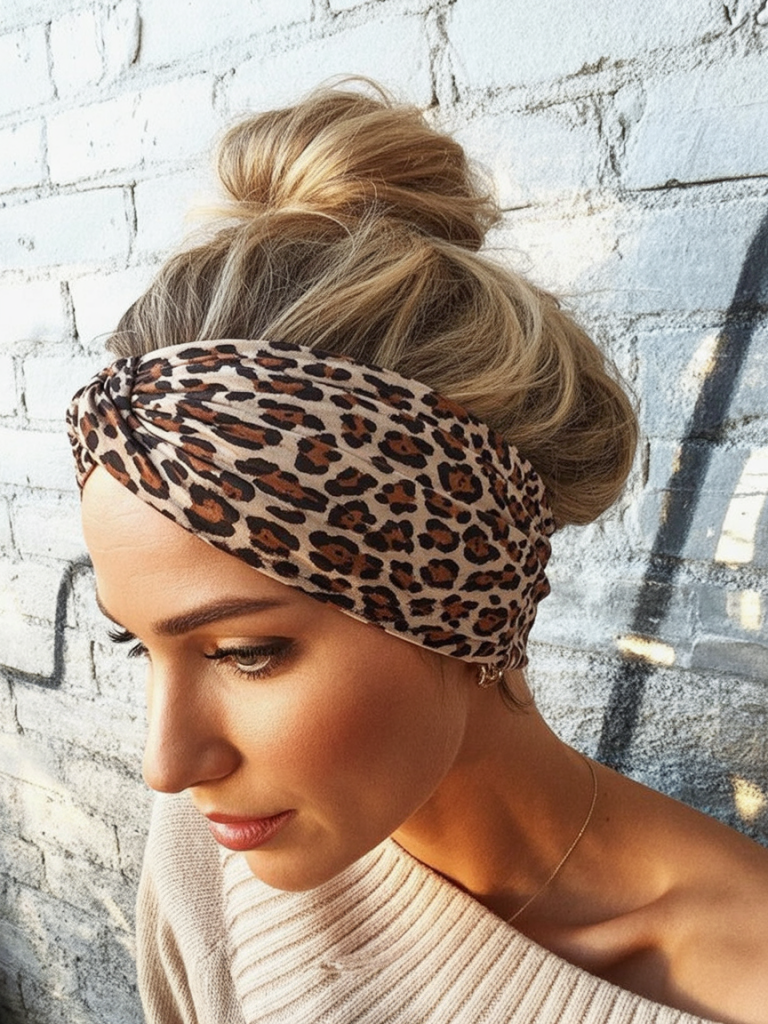 Slow morning on a Sunday this hairstyle is romantic soft and oh so stress-free. It is a perfect harmony in the high bun and neutral-colored headband, whereas those loose face-framing pieces serve as gravity and make it imperfect and a bit in disarray. Think boho daydream with a pinch of elegance.