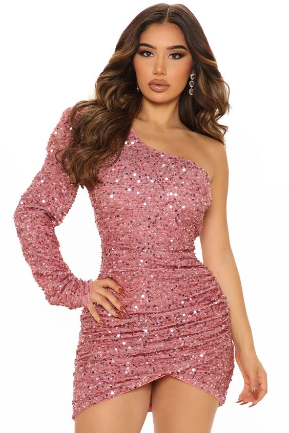 A sparkling sequin dress in rose is a testament to your shining moment. With a figure-hugging silhouette and shimmering details, it’s a glamorous nod to the festive spirit of a birthday.