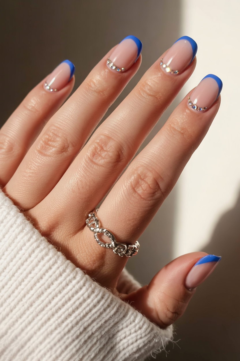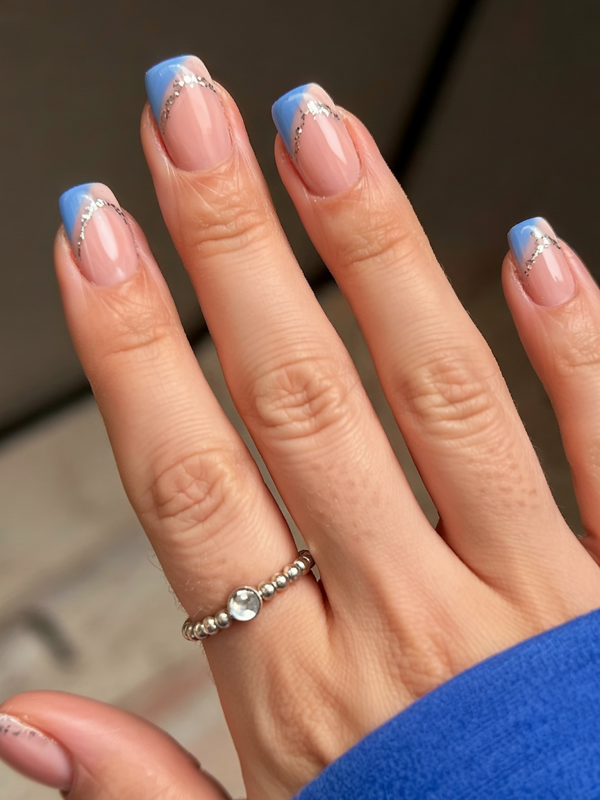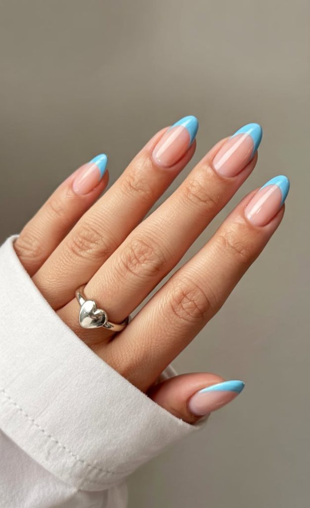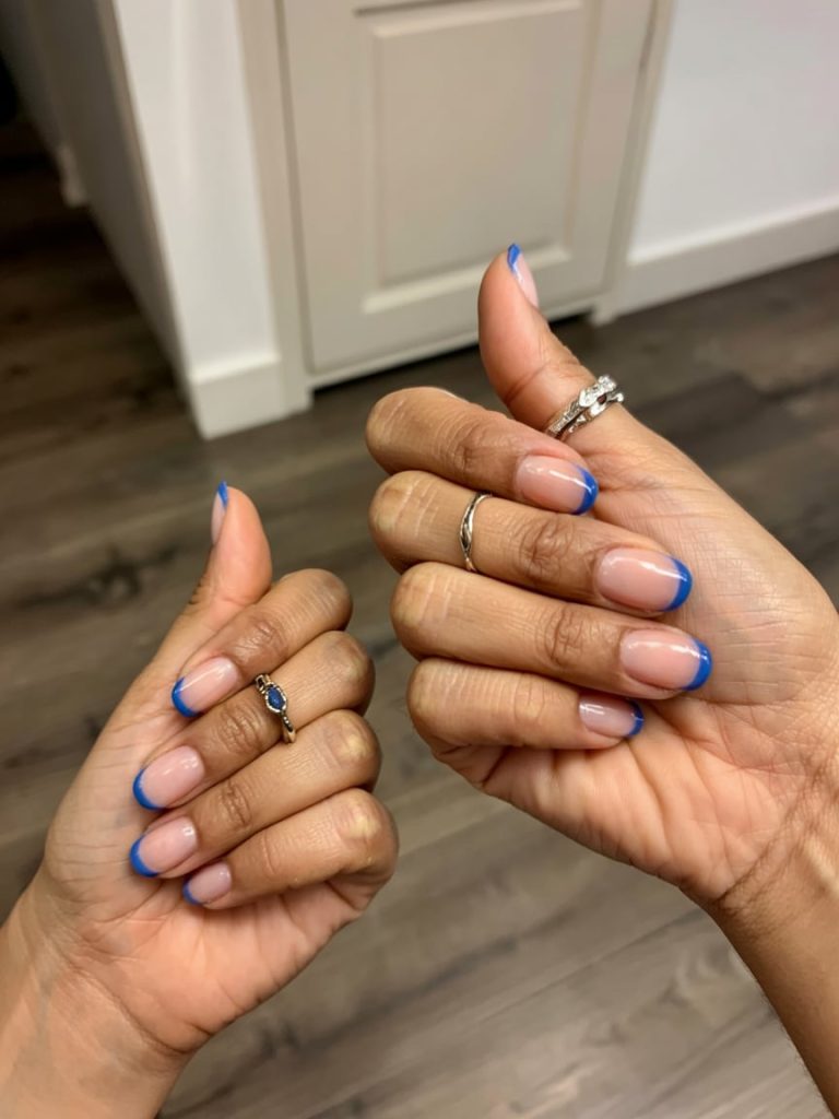 “If you’re, like, totally into all shades of blue, no matter what kind of mood they’re in, this is one cool way to rock them.” (If you’re, like, totally into all shades of blue, no matter what kind of mood they’re in, this is one cool way to rock them.) ”This is one of these clean, easy, and effortless enhancements that just adds a little movement and pop to your nails, especially on soft, curved nails that would normally be more delicate.” (This is one of these clean, easy, and effortless enhancements that just adds a little movement and pop to your nails, especially on soft, curved nails that These color-on-color French tips, as seen on this design, are right on point for 2026, especially when it comes to cool and royal colors of the sky. They offer a great alternative to doing a white and tips mani but are still just as easy to rock as far as what you can grab out of your closet. To really tie all of these colors together that you have going on, you can pair this mani with some silver accessories, pink, and some lip color, or even some dusty blue sweater, based on your personal preference and what you think complements your look. By this point, you can probably tell that blue French tip nails are more than just a seasonal romance—they’re actually a pretty wearable way of injecting a little happiness into your daily life. And whether you opt for a small micro tip, an electric statement colorblock, or just a pastel watercolor dream of flowers and sparkles, having the right blue on hand can easily make your hands look brighter, more refreshing, and just a little more empowering just by putting them on your body. Pick a few of these, save them, and hand them over to your favorite nail artist and treat yourself to that little thrill of picking a color just because it makes you happy—because, after all, every time you grab your keys or grab your cup of coffee, you’re treating yourself to a little ‘wow, that looks good.'”