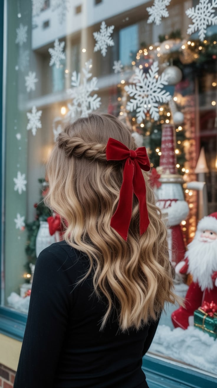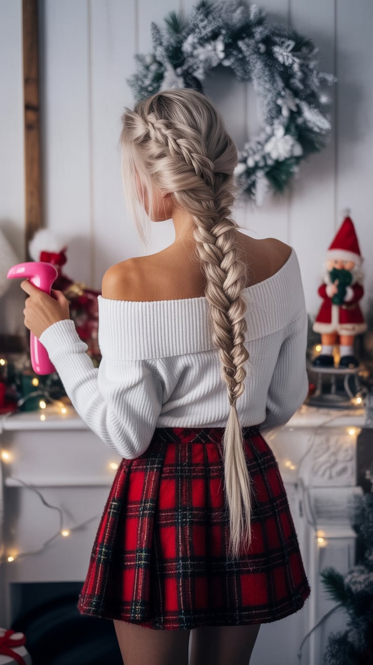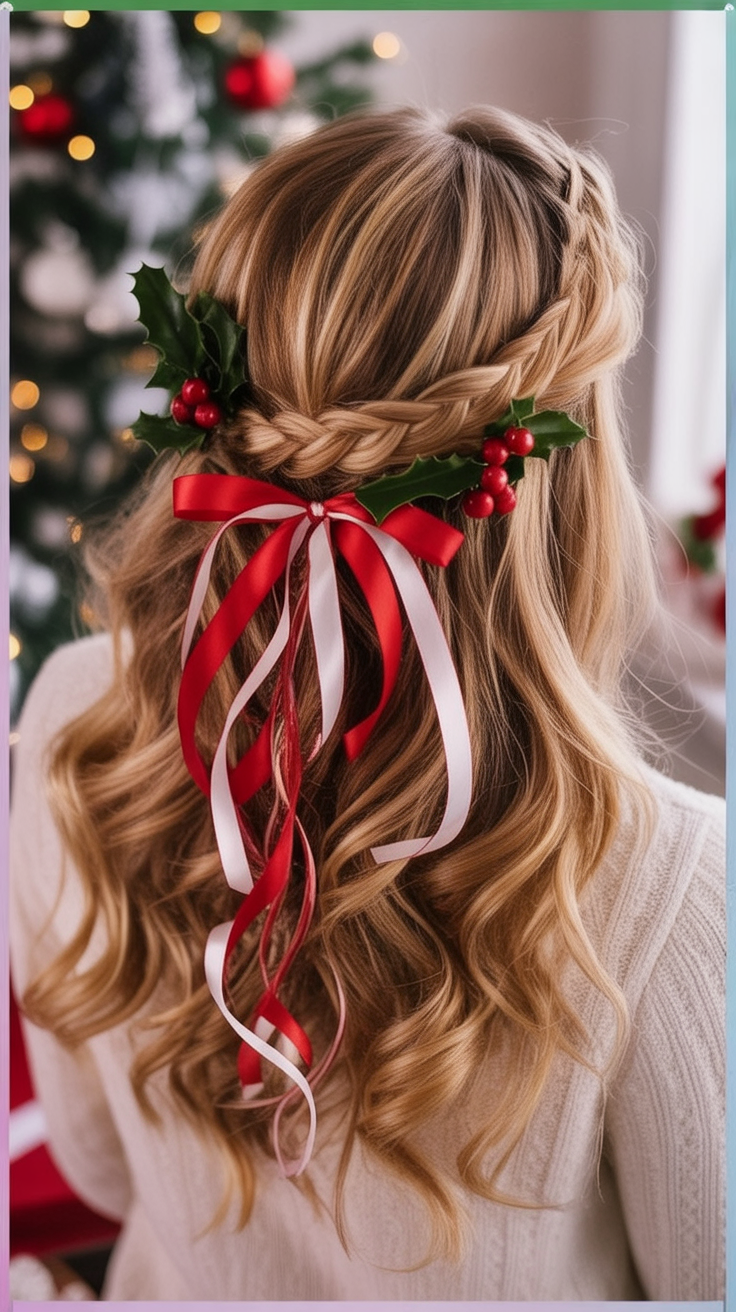 This braid, tied with flowing red and white ribbons, is an instant holiday classic. It’s romantic yet lively, giving any outfit an extra lift.