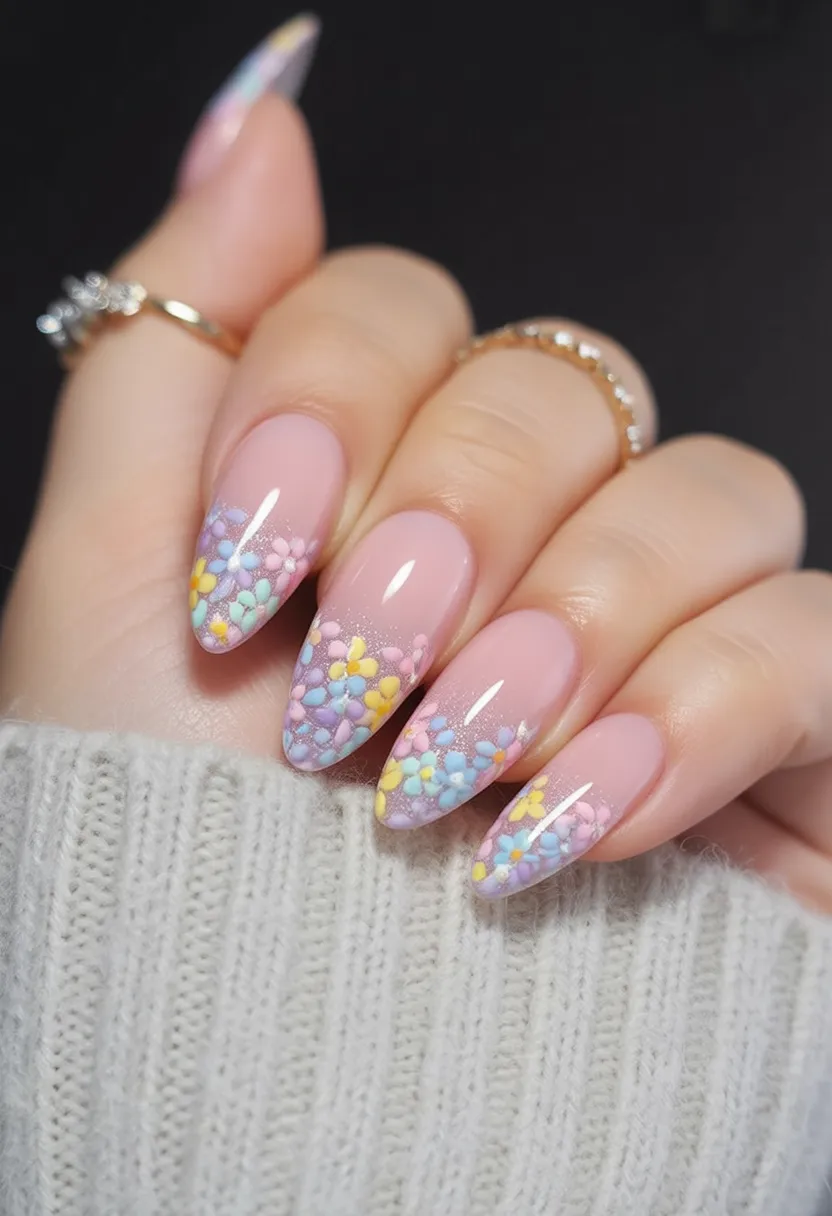 The almond shape helps showcase the gradient smoothly, making fingers look longer and more elegant. This style offers a lovely emotional payoff—it feels fresh, uplifting, and subtly confidence-boosting. It’s a great choice if you want something romantic but not overly sweet.