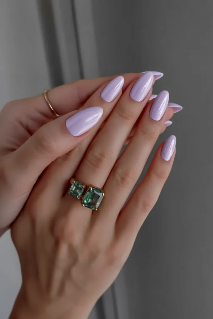 Soft, cool-toned, and quietly luxurious, this almond purple manicure feels incredibly modern. The color is subtle yet distinctive, giving off a calm confidence that feels very now. It’s the kind of shade that catches the light beautifully without screaming for attention—perfect for easing into spring with sophistication.