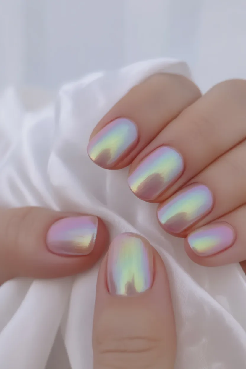 4. Short Iridescent Glow Nails