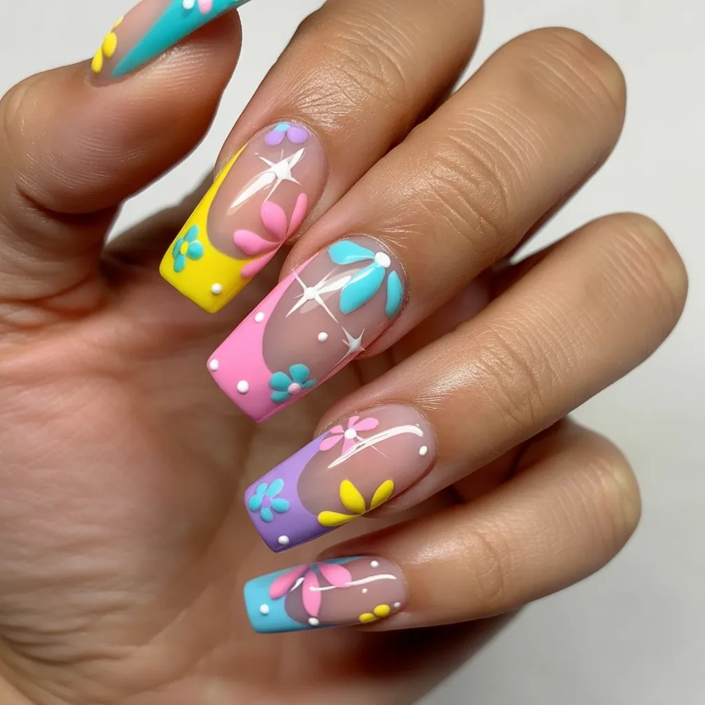 These nails feel joyful, creative, and unapologetically fun. The pastel mix and raised floral details bring a burst of personality that instantly boosts your mood. It’s playful without being childish, making it a standout choice for spring when everything feels lighter and more expressive.