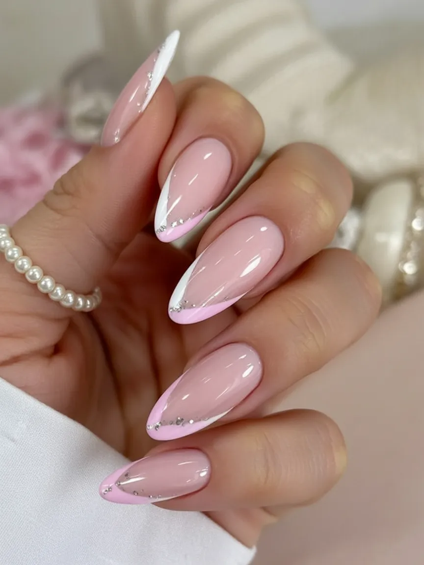 9. Almond Pink Sparkle French