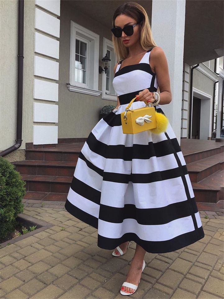 Stripes never go out of style. Opt for bold, colorful striped dresses for a look that’s both classic and on-trend.