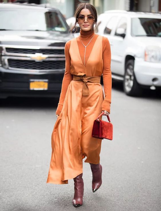 Create a sleek, sophisticated look with monochrome dress outfits. Choose a single color and play with different shades and textures within that palette.