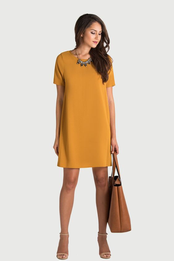 For a classy look, choose dresses with clean lines and elegant fabrics. Think of a sheath dress or a sophisticated A-line.