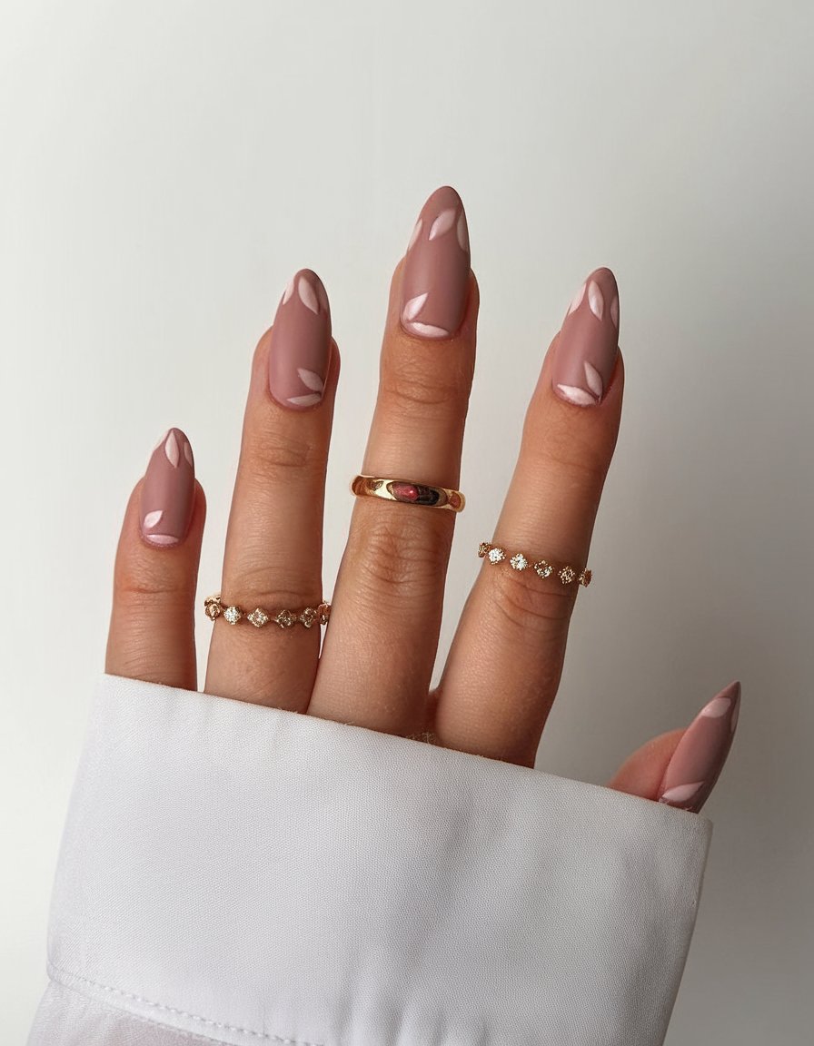 And this almond shape design will flatter any type of hands and is suitable to those who want a muted color scheme with a hint of artistic expression. Wear it with silver jewelry to make the leaf detailing shine, and go for gel to still have the matte finish.