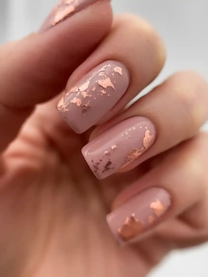 This delicate mauve amped up with foiled rose gold has a certain secret richness about it, as in someone got designer jewelry to wear on their hands. It does not shout and is so chic with a bit of romance in every early fall outfit.