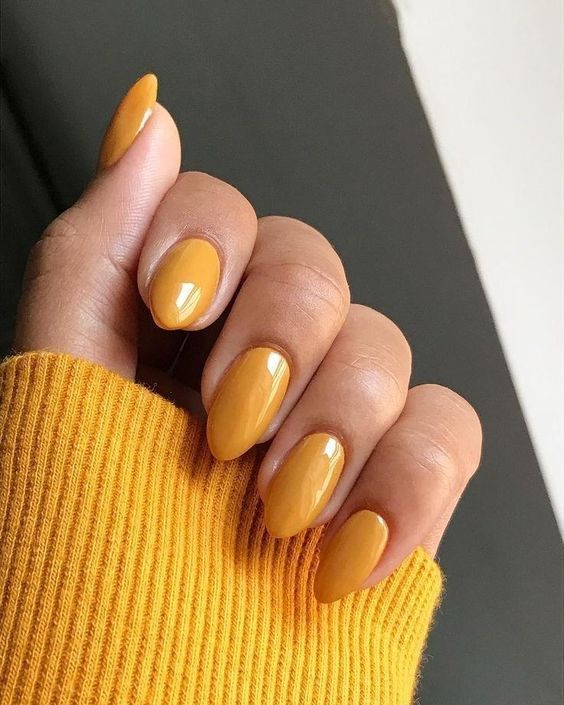 Brighten up your fall wardrobe with this cheerful mustard yellow manicure. The bold, glossy finish is eye-catching and fun, perfect for those who love to make a statement. It’s a refreshing take on fall nail colors.