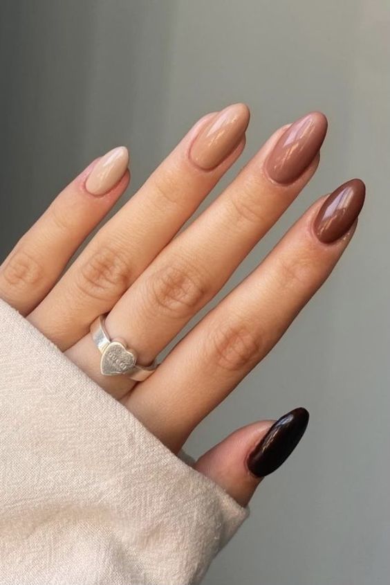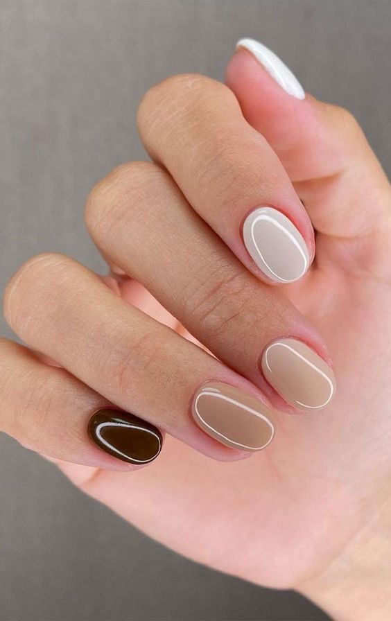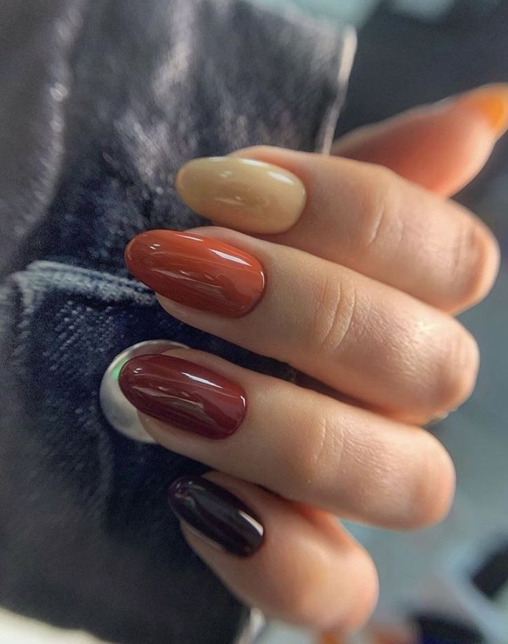 This design features a mix of neutral shades, from light beige to deep mauve. The variety of colors adds depth and interest, while the glossy finish keeps it sophisticated. It’s a perfect example of simple yet elegant autumn designs.