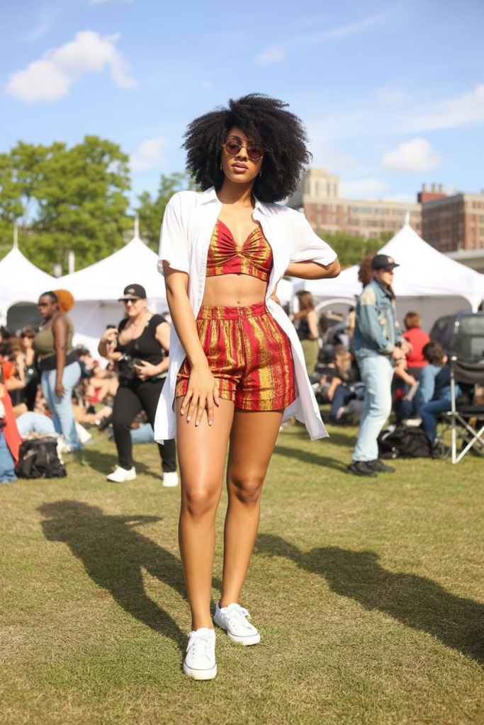 Motivation or inspiration: If you’re craving something bold but wearable for a festival outfit in 2026, this set is a dream. It flatters beautifully on Black women and midsize figures, offering vibrant style without sacrificing comfort.