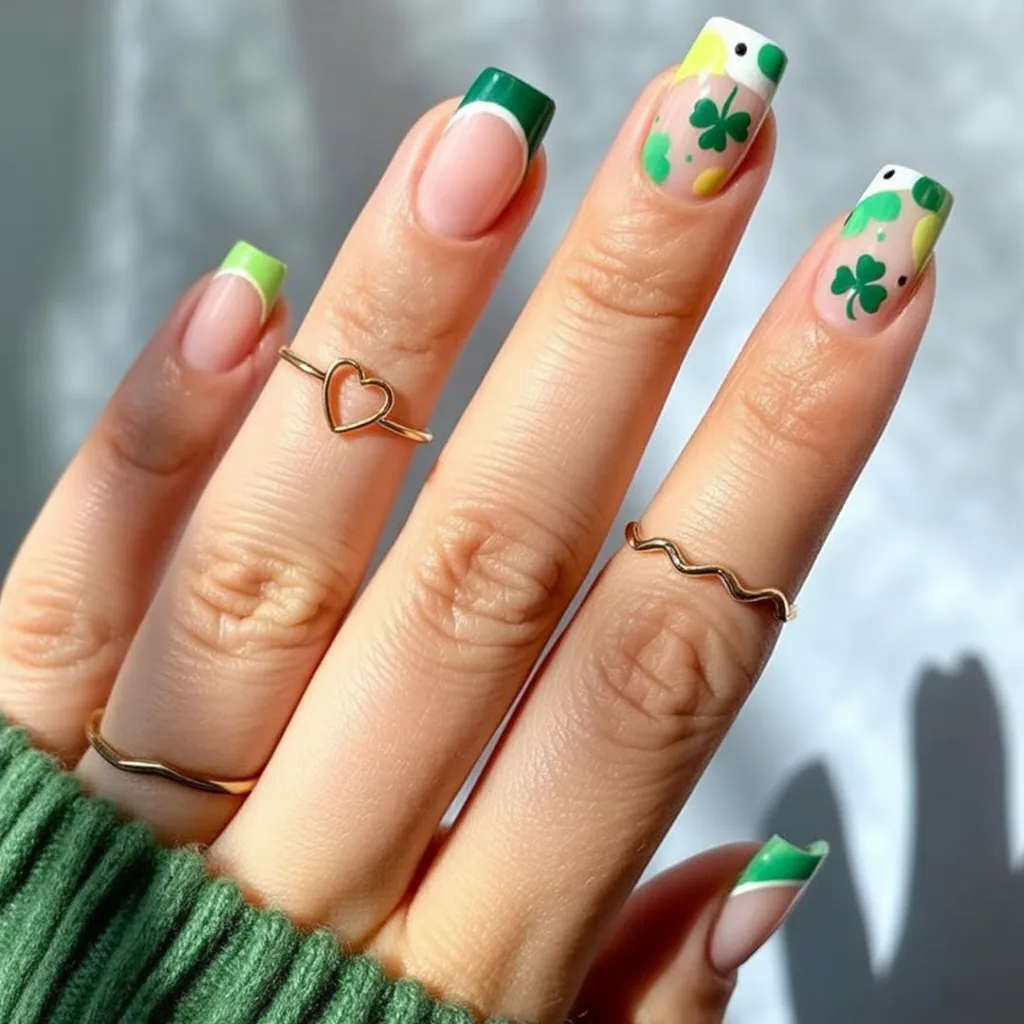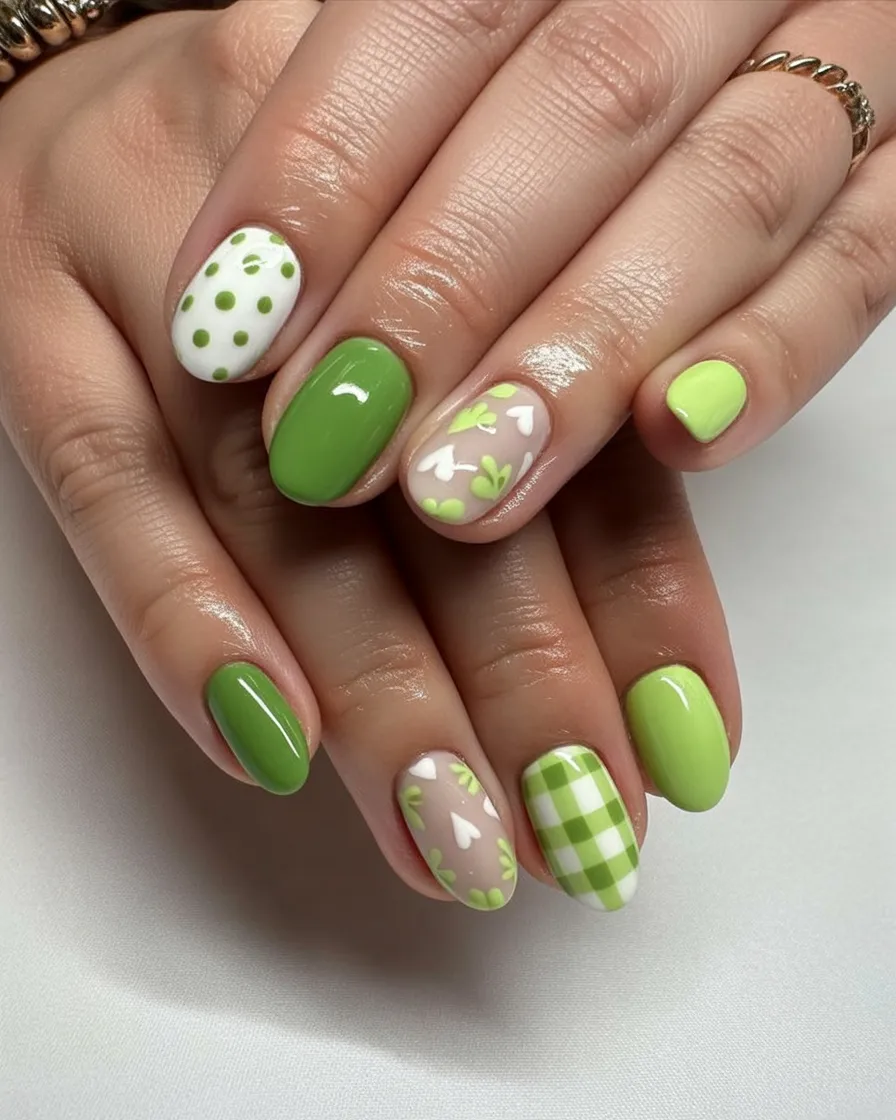 Perfect for St. Patrick’s Day or St. Patrick’s Day green ideas, this look also fits broader 2026 trends that celebrate individuality. The mix-and-match approach works best when each nail feels intentional. If you love experimenting with designs and want inspo that stands out, this one delivers.