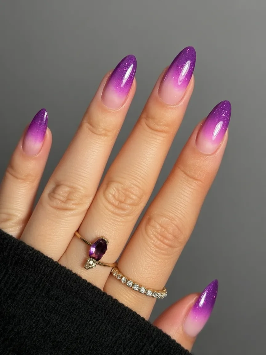 There’s something effortlessly elegant about this soft purple ombré. It feels calm, feminine, and quietly confident—like the first moments of spring when the air is still cool but full of promise. The gentle fade from natural to violet has a dreamy quality that feels polished without trying too hard. It’s the kind of manicure that doesn’t shout for attention, yet somehow always gets noticed.