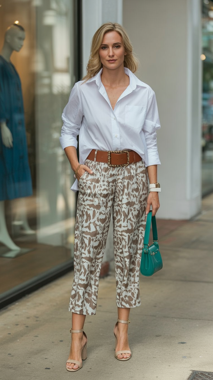 19. White Shirt with Printed Cropped Trousers