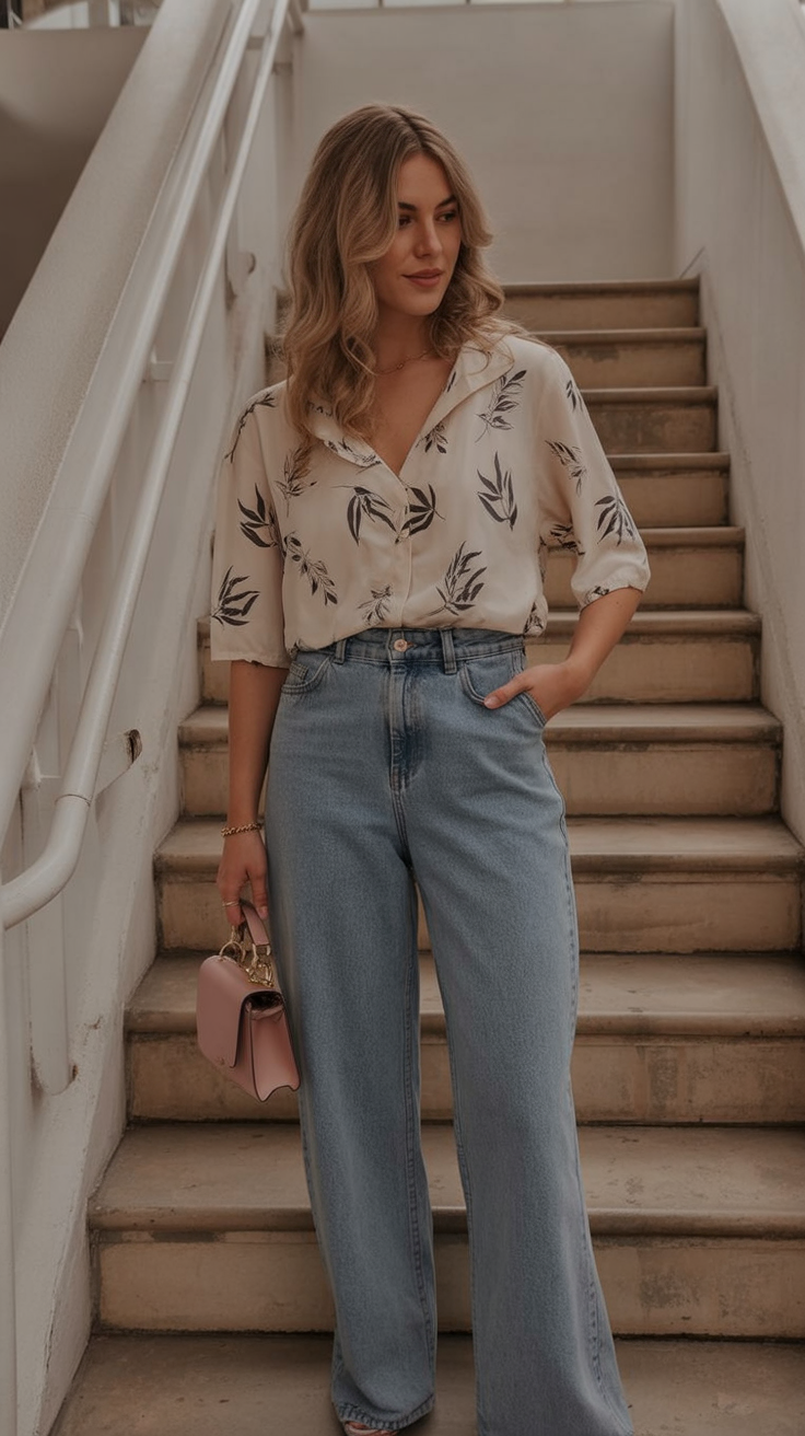 This look feels relaxed yet intentional—like you know your style and don’t need to overthink it. The soft print adds personality, while the classic denim keeps things familiar and easy. It’s warm, approachable, and very wearable.