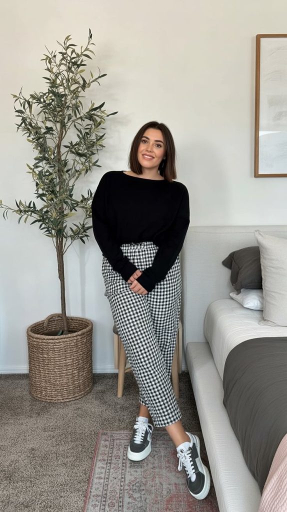 6. Gingham Pants with Relaxed Black Top