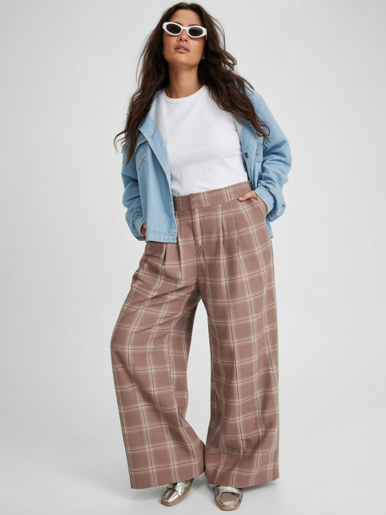 4. Plaid Wide-Leg Pants with Casual Layers
