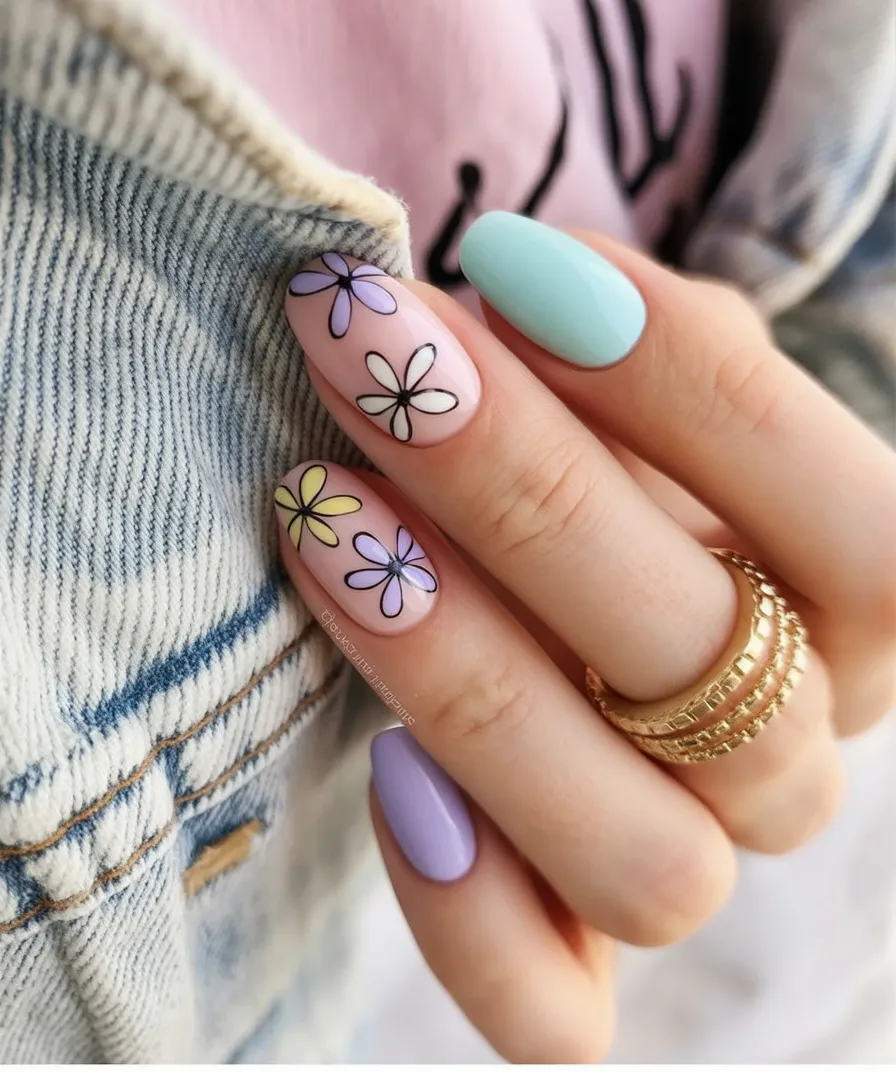 If you love cute nail art, this is a beautiful choice. Almond shapes give the design room to breathe, and the soft colors keep it from feeling too busy. It fits perfectly into Ideas spring 2026 with its light, happy vibe.