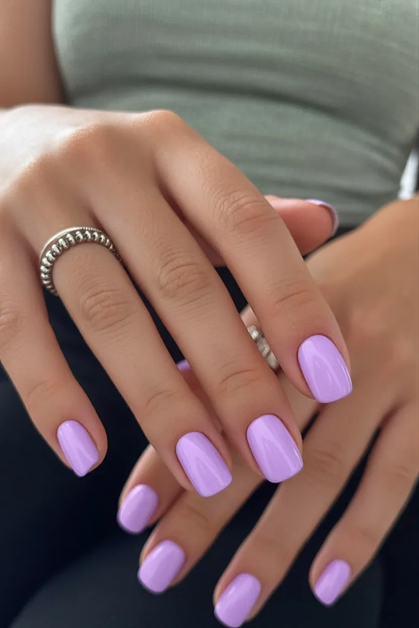 There’s something effortlessly calming about this soft lavender shade. It feels gentle, feminine, and easy—like your favorite cozy knit or a quiet Sunday afternoon. This manicure doesn’t try too hard, and that’s exactly why it works so well.