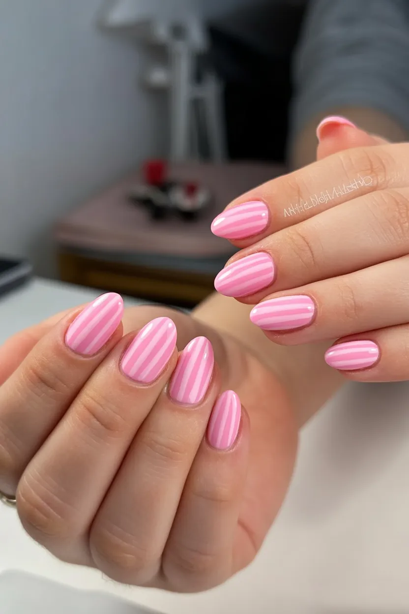 This design feels fresh, fun, and effortlessly cute. The pink stripes add movement and interest, while the short length keeps everything practical and easy. It’s playful without being overdone.