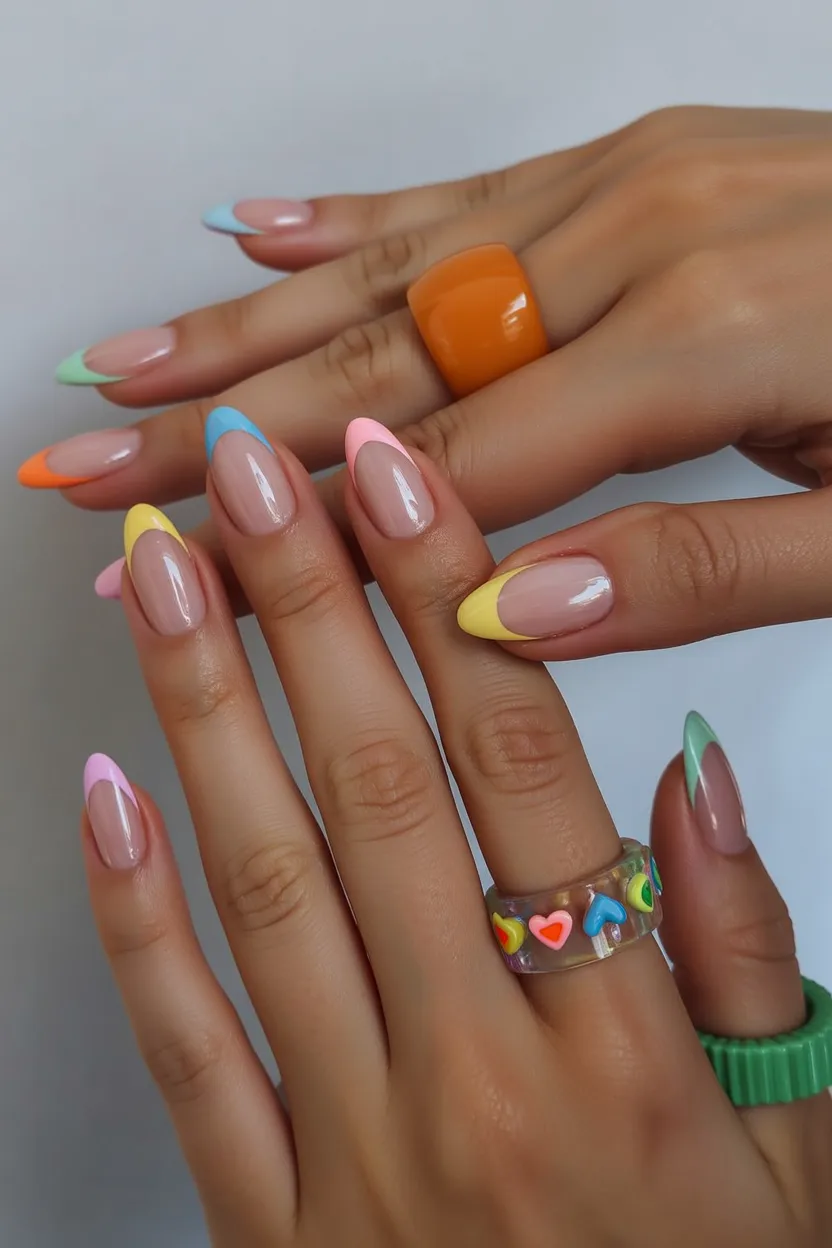 16. Pastel French Almond Nails with Mixed Colors