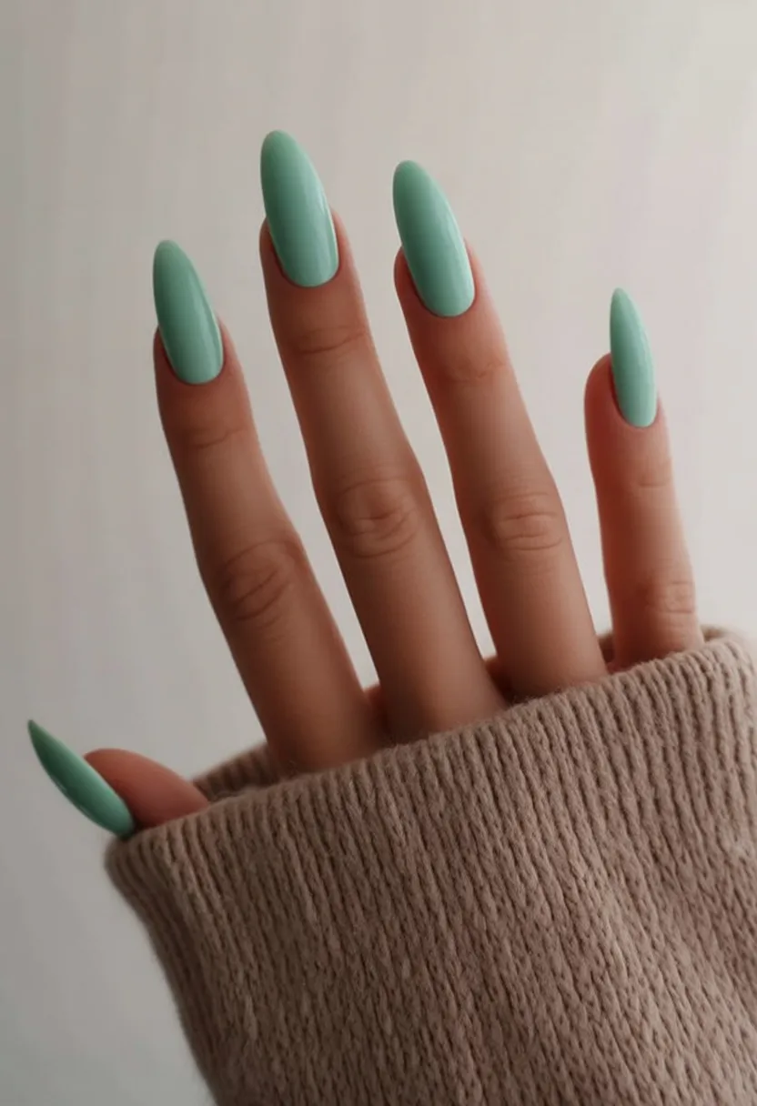 15. Solid Mint Almond Nails
