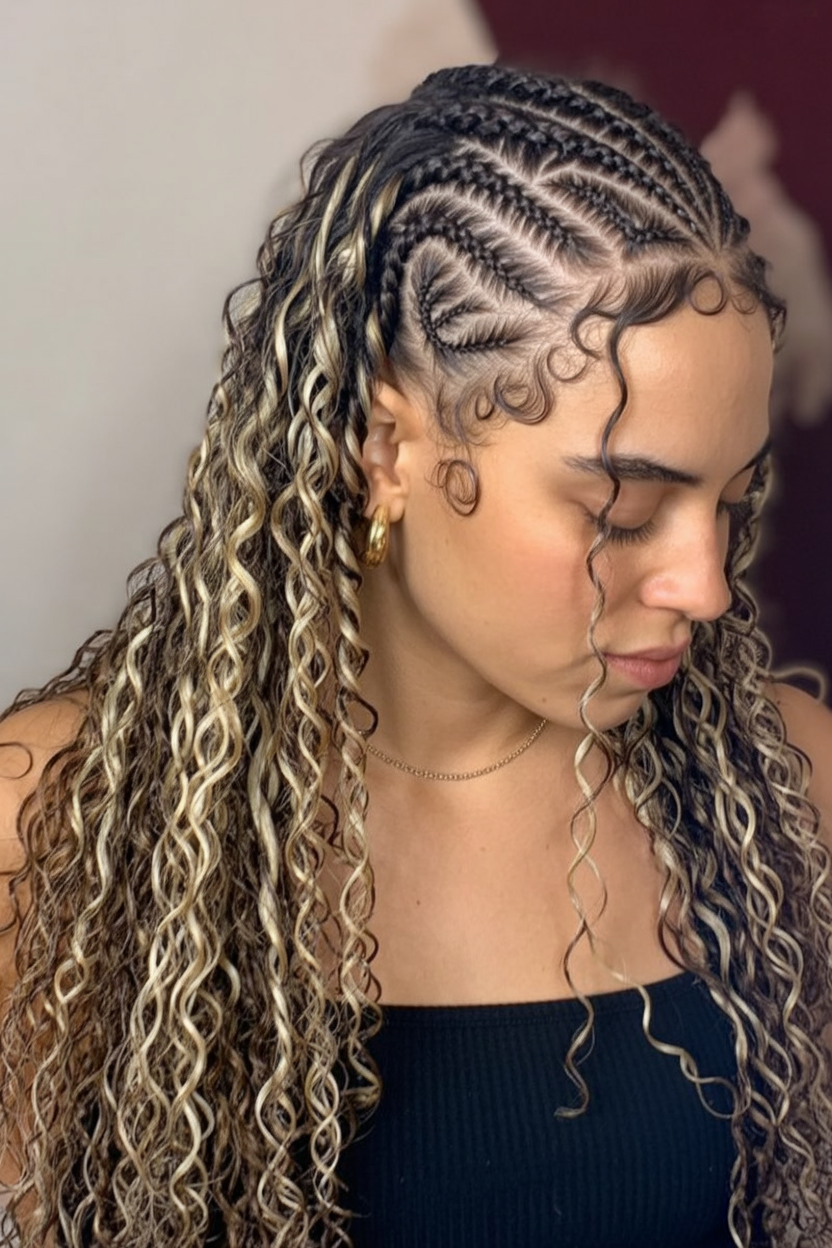 21. Fulani Leaf-Part Braids with Highlighted Curls